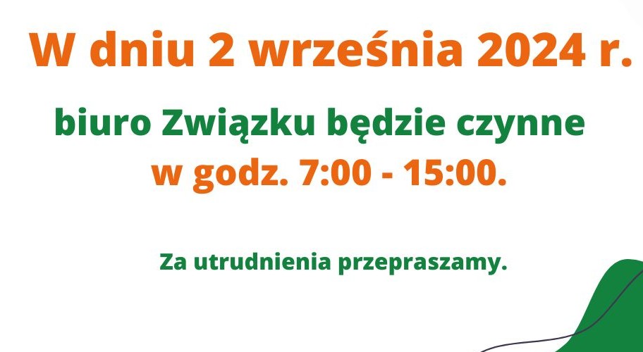 W dniu 31 marca br. biuro Związku będzie czynne w godz. 7:00 - 15:00